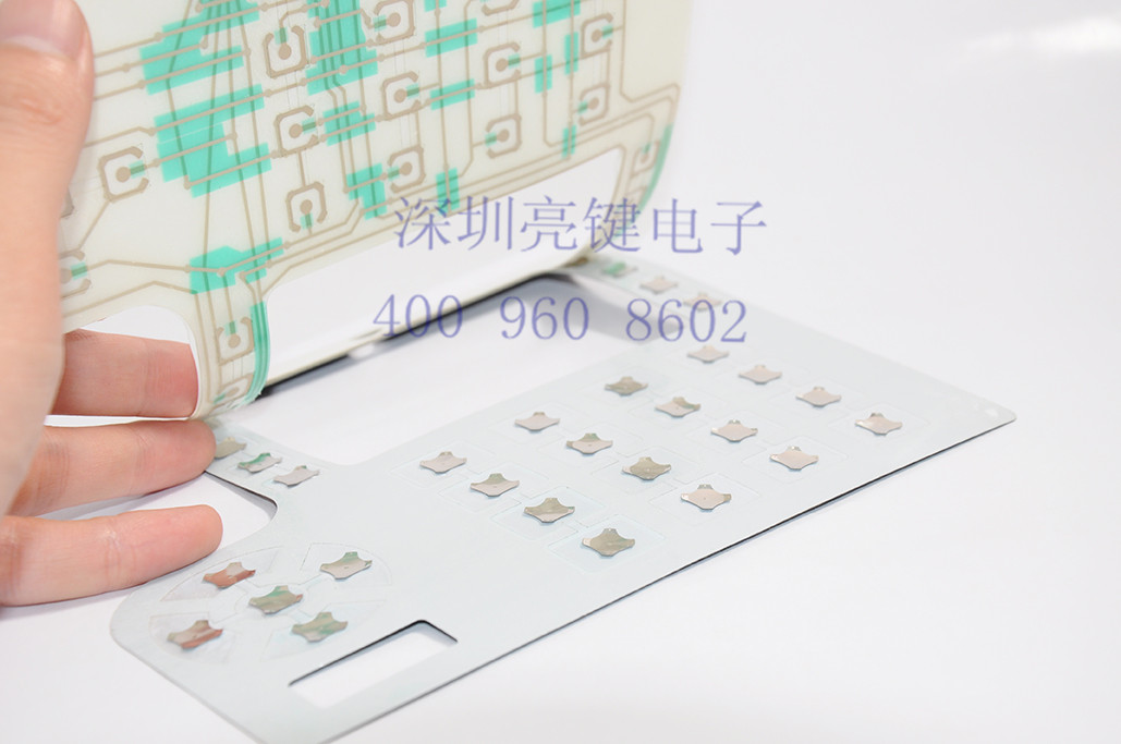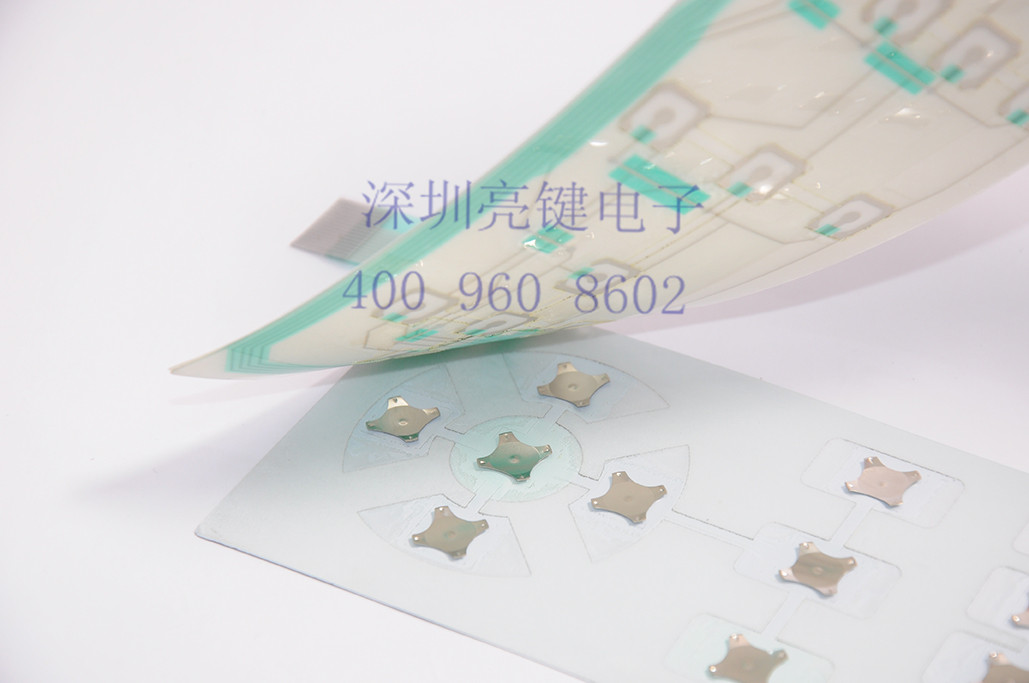 彈片在柔性薄膜開關中的應用主要是提供觸覺反饋(即手感),一般不用,其弊端是金屬彈片的行程與開關觸點間行程之間的差距導致彈片與開關不能